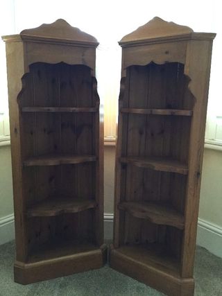Two solid pine corner units. Can be wall hung or floor standing. Good Condition. Can be sold separately if required. SOLD