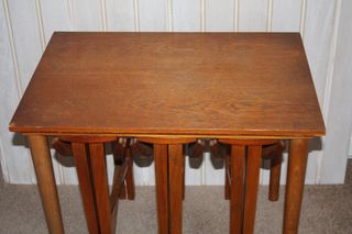Lovely oak nest of tables. They need a little attention but are solid and well made. Would make a good upcycling project. To see extra photos please see our ebay shop. SOLD