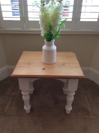 Lovely small pine table. Legs have been painted in Annie Sloan white chalk paint. The top has been sanded and given two coats of wax. Very good condition. SOLD