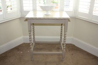 Painted in Annie Sloan Old White chalk paint and waxed. The top has been sanded down and been given two coats of wax. This could be used as a telephone table or side table. SOLD