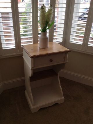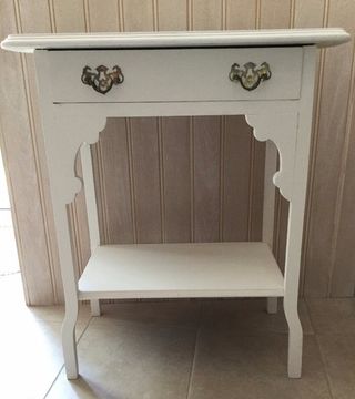 Very attractive white side table with drawer painted in chalk paint and waxed.