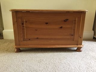 Solid Pine Blanket box, originally from Marks and Spencer. The chest has a few marks on it as to be expected for it's age but overall it is a good, solid piece of furniture.